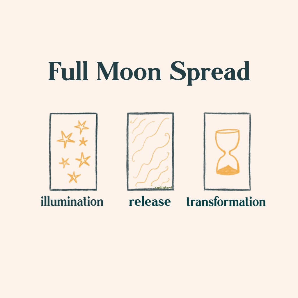 Full Moon Tarot Spread - three cards for illumination, release and transformation.