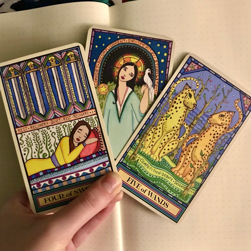Four of Swords, Nine of Pentacles and Five of Wands – The Wandering Star