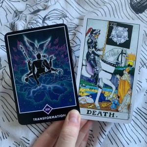 For the first decade of my practice I used the Osho Zen tarot where the Death card is named Transformation, so it has never seemed like a scary card to me. Now that I’ve been reading professionally for a while, I’ve realised that I have the urge to explain away the intimidating nature of the Death card if it ever crops up in a reading. I’m working on not shying away from the traditional imagery and the feelings it might evoke in a querent.